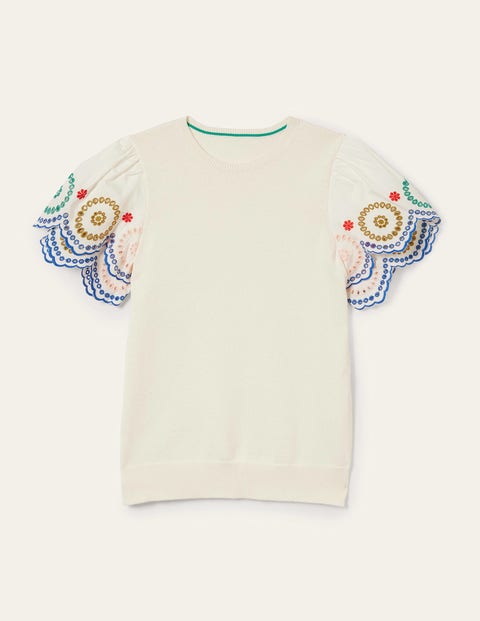 Knitted Sleeve Detail T Shirt Ivory Boden Us